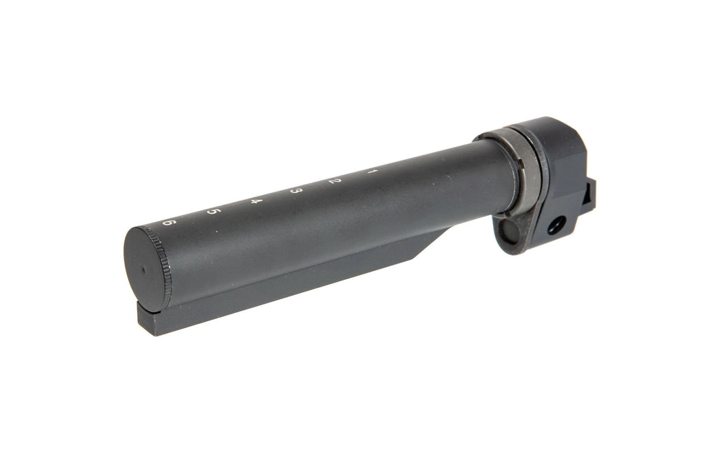 5KU E&L AKS-74 yhteensopiva AR15 bufferiputken adapterin AK runkoon kiinnittyvä liitososa on valmistettu teräksestä ja alumiinista. AR15 yhteensopiville vetoperille tarkoitettu buffeributkin on alumiinen. Sovitin mahdollistaa AK mallisen aseen käyttöergonomian parantamisen säädettävievn vetoperien avulla. Bufferiputkiadapterista löytyy on 2 QD yhteensopivaa kantohinhan kiinnityslenkille tarkoitettua paikkaa.