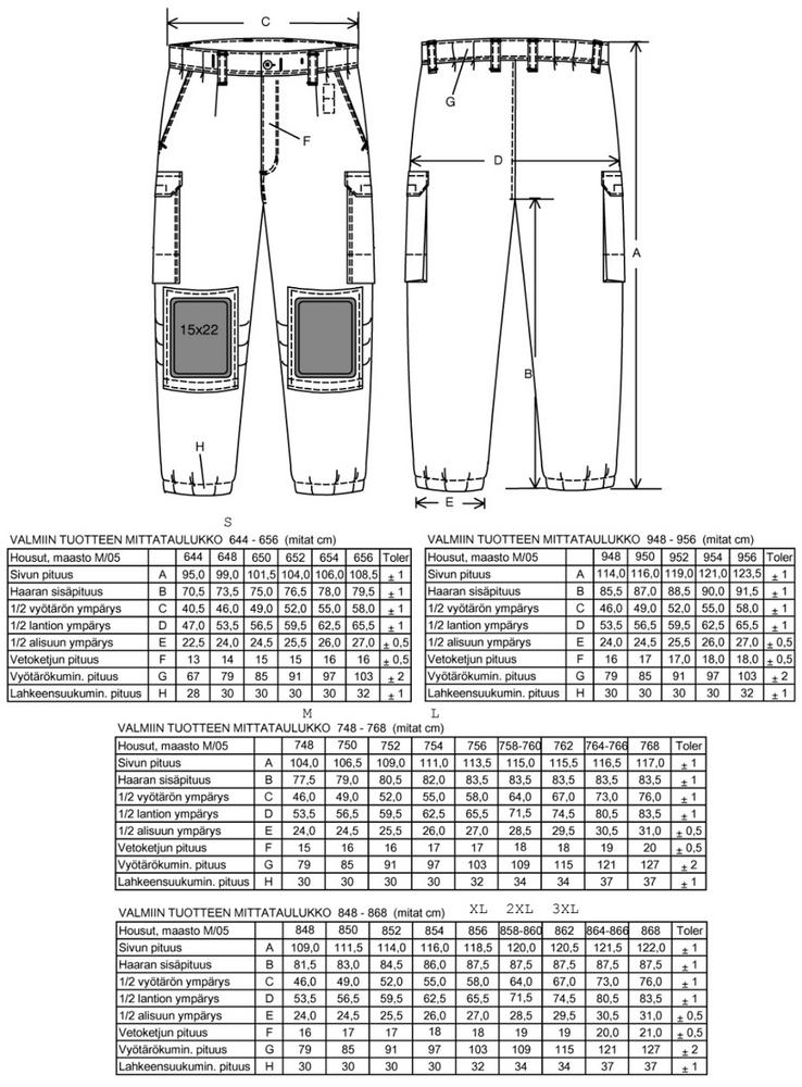 Huom! M05 maastohousuissa ja M05 taisteluhousuissa on erilainen vyötärön mitoitus!