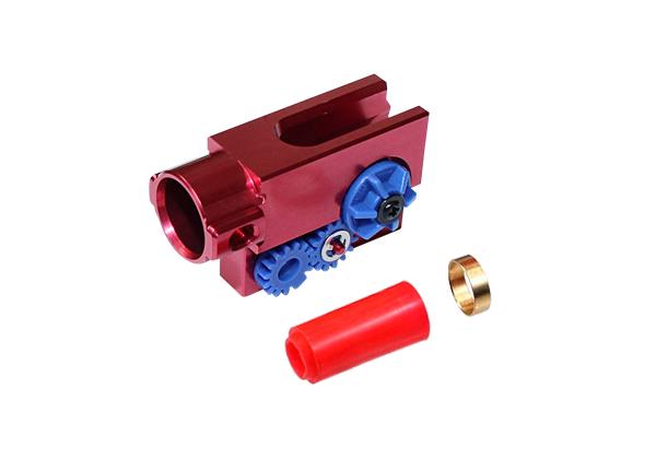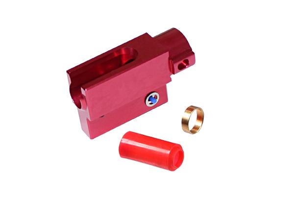 SHS CNC hop-up yksikkö on täysin uudelleen suunniteltu ja tarkasti alumiinista CNC-työstämällä valmistettu kokonaan alkuperäisen hop-up yksikön korvaava viritysosa. SHS yksikön pinta on anodisoitu tyylikkäästi punaisella värillä.