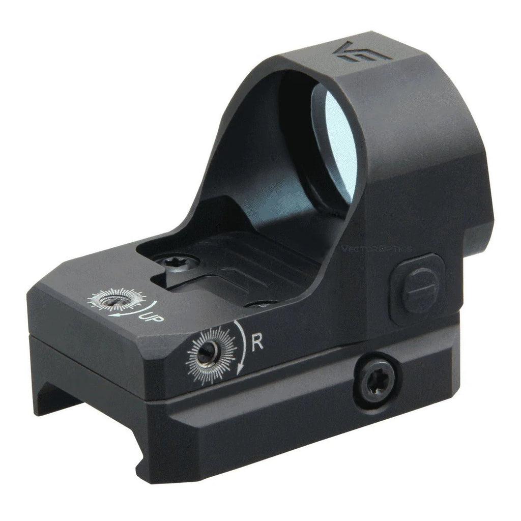 Vector Optics Frenzy-X 1x22x26 MOS punapistetähtäin on erittäin pienikokoinen ja punapistetähtäin ilman suurennusta. Tähtäin kiinnittyy aseeseen "MOJ- Red Dot Footprint" standardin mukaisen kiinnitysalustan avulla. Tähtäimen mukana toimitetaan Weaver / RIS kiskoon sopiva jalusta, mutta esimerkiksi pistooliin tähtäintä kiinnitettäessä tulee hankkia erillinen pistoolin mallisarjan mukainen jalusta.