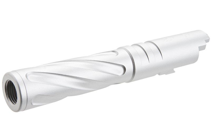 The 5KU Tokyo Marui Hi-capa 4.3 Tornado outer barrel is made of aluminum and has a stylish burr finish. The barrel is designed to fit the Tokyo Marui Hi-Capa 4.3 series airsoft gas pistols. This barrel has an 11mm CW female thread at the end, which allows you to easily add 11mm internal thread accessories or a 14mm CCW suppressor adapter to your airsoft pistol.