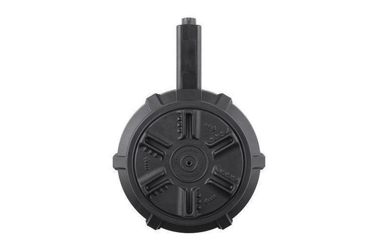 This magazine will definitely not run out of bullets mid-game. The drum magazine does not require any kind of battery, it works simply by rotating the front part.