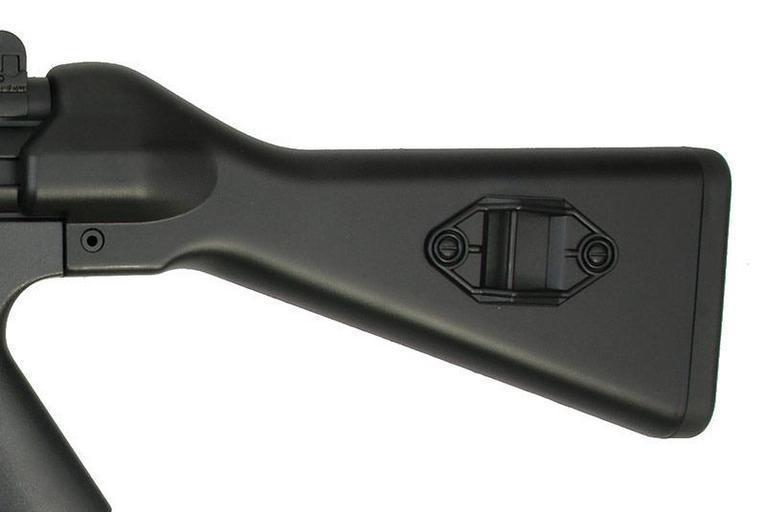 Jing Gong JG070MG is a plastic-bodied MP5-series AEG (Automatic Electric Gun). Despite the plastic body, metal has been used in parts essential for stability inside the gun, such as the trigger. The small size makes the gun suitable for efficient play in tight spaces.