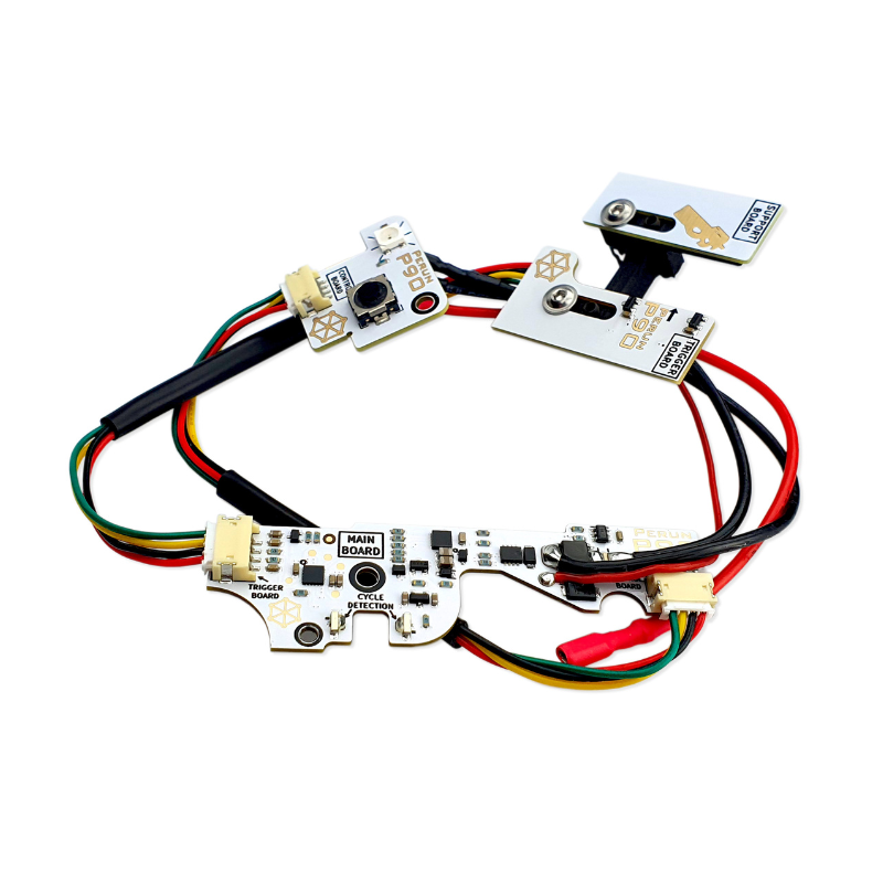 Perun P90 ETU (Electronic Trigger Unit) on täysin elektroninen liipaisinyksikkö, joka korvaa P90-mallisten airsoft-aseiden perinteisen mekaanisen liipaisinmekanismin. Se tarjoaa modernin MOSFET-ohjauksen, ohjelmoitavat tulimuodot ja monipuoliset suojausominaisuudet - kaikki kompaktissa, helposti asennettavassa paketissa.