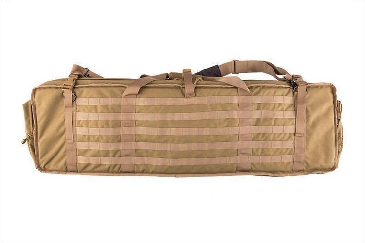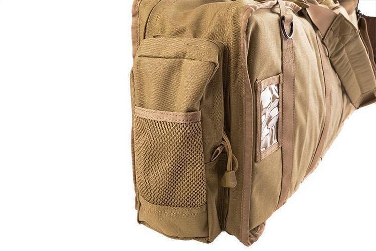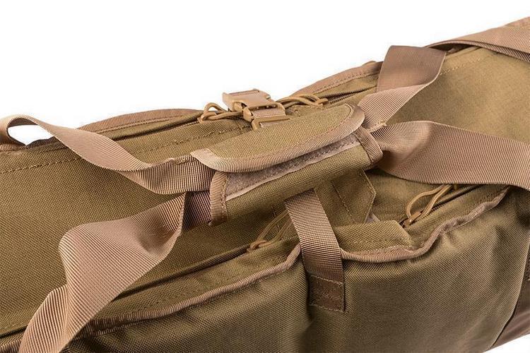Primal Gear Mammoth gun case is a high-quality, durable and, as its name suggests, mammoth-sized gun case. The structure of the bag is different from traditional holster-style gun cases. Inside the bag there are two soft support pieces, which can be used to support one or two weapons inside the bag, depending on the need and the weapon. For example, when carrying machine gun-style weapons (e.g. m249), a mounting method that supports one weapon is used, and alternatively, when carrying assault rifle-style weapons, a mounting method for two weapons can be utilized. The ends of the bag have integrated accessory pockets and on the outside, a MOLLE system for attaching additional accessory pockets according to your own needs.
