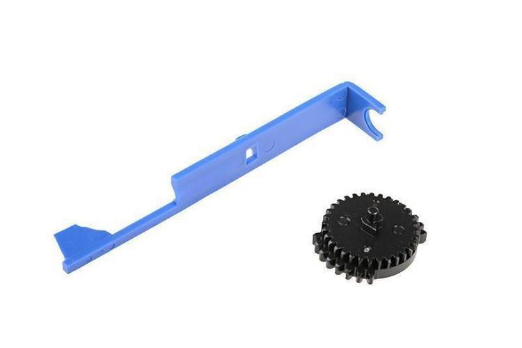 The DSG gear significantly changes the operation of the airsoft gun and for this reason their installation also requires modification of the mechanism parts. With the DSG gear, the piston toothing must be changed to match the toothing of the new gear. With the DSG gear, the piston stroke is shortened, which limits the maximum length of the inner barrel and lowers the muzzle velocity of the gun.