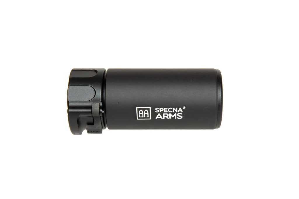 The Specna Arms MTU-Fire V2 suppressor is a combination of a light tracer, muzzle flash simulator and silencer. The MTU-Fire™ suppressor allows for both tracer bullet illumination and effective muzzle flash simulation with every shot using powerful LED lights.