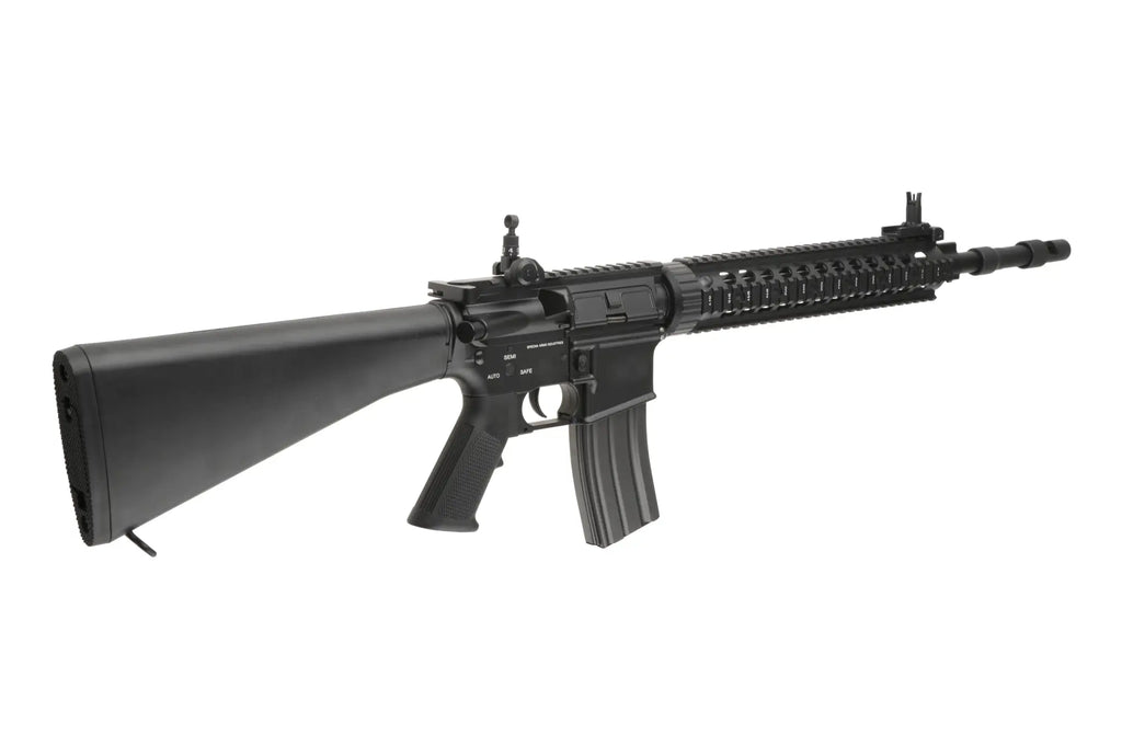 The Specna Arms SA-B16 is a high-quality M4/M16 style airsoft carbine modeled after the MK12 MOD1 SPR model, an AR15-based weapon. This model is part of Specna Arms' ONE™ series and is equipped with the SAEC™ quick spring change system and the Eshooter Kestrel V2 Basic ETU, which bring both power and practicality to the player.