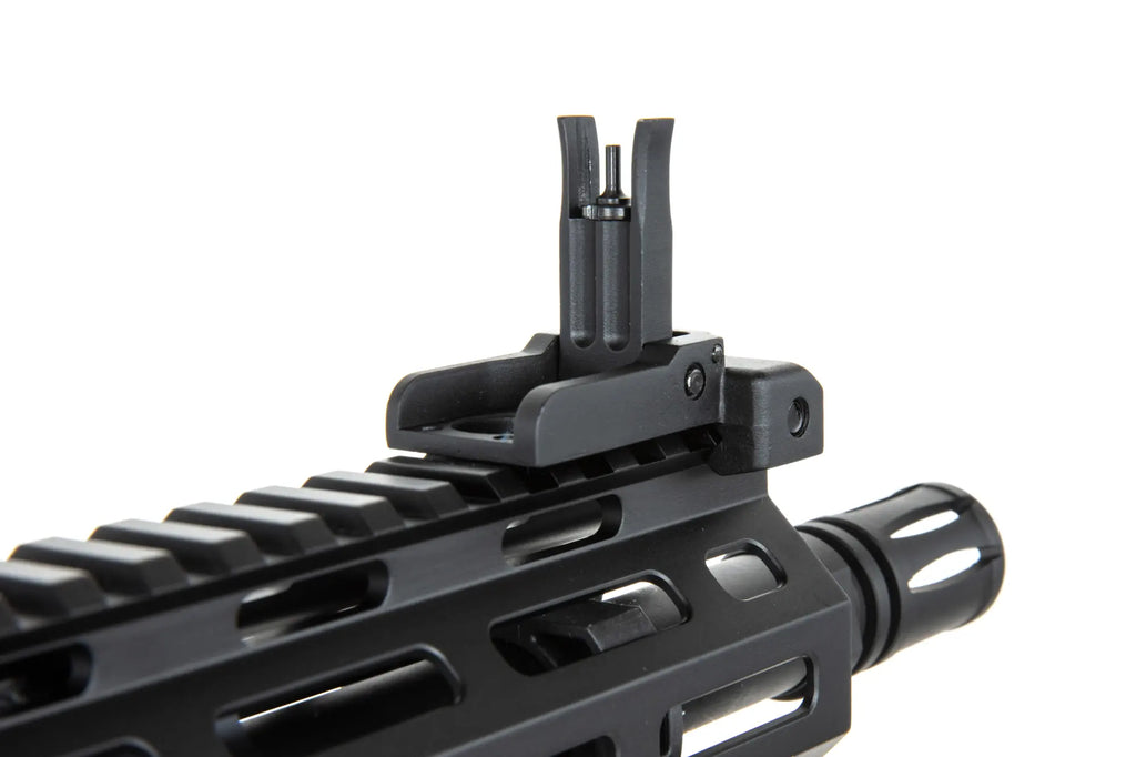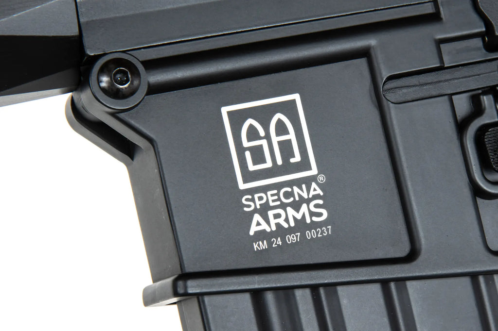 The replica is the result of a collaboration between Specna Arms and Double Bell. The Specna Arms SA-E38 EDGE™ is an electric SR-25 style airsoft replica designed specifically for long-range roles and DMR use. The weapon uses SR-25 style magazines and is equipped with a fixed stock, which provides excellent stability and a realistic appearance. The M-LOK compatible rail system on the front allows for easy attachment of optics, grips and other accessories - a perfect choice for DMR projects.