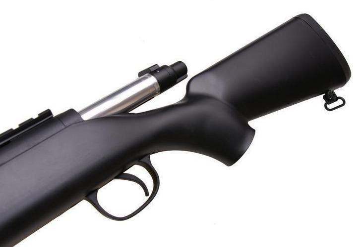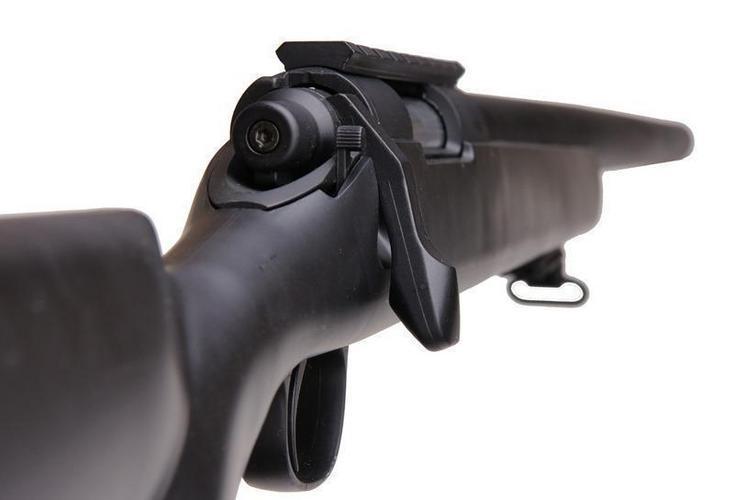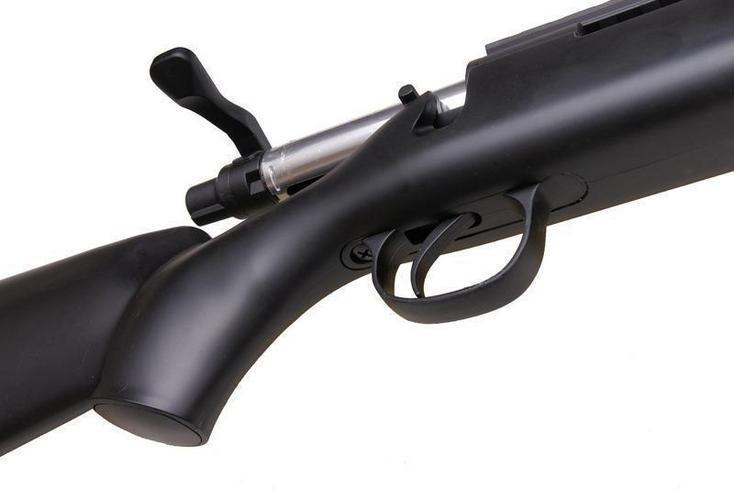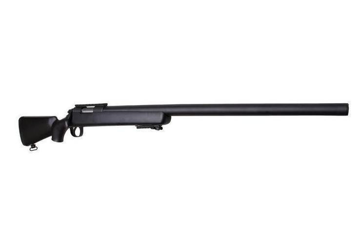 The MB03 series is based on the Marui VSR-10 series, which loosely models the M700 sniper rifle. The MB03 is fully compatible with the Marui VSR-10 series, which means that a wide range of tuning parts are available for the weapon. The barrel and receiver are made of metal, but the wood imitation stock is made of ABS plastic. The top of the weapon has a 22mm weaver rail for the scope and the front of the stock for the front legs.
