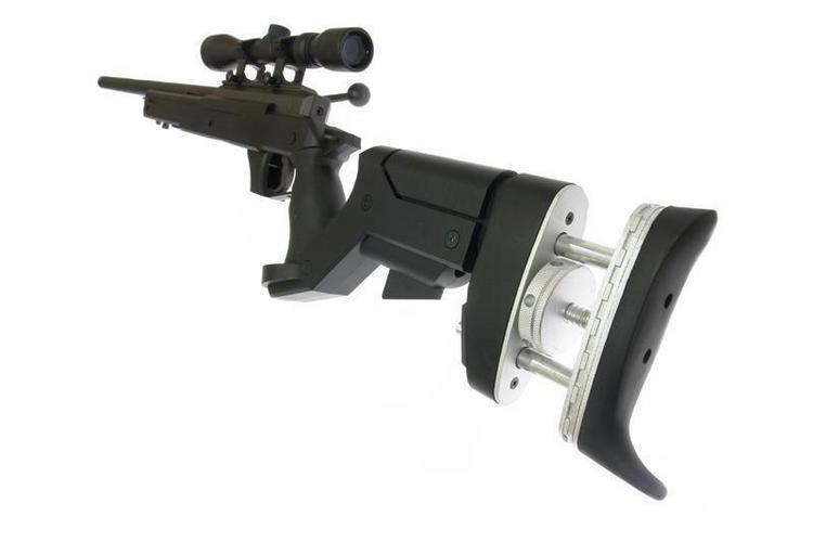 The Well MB05C replica's stock is made of durable plastic and the rest of the frame is made of metal. The length and ergonomics of the stock can be adjusted according to the user's own preferences. The top of the weapon has a factory-installed metal 22mm RIS rail for attaching a scope.